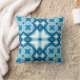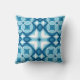 Dekorativ kudde i ett fyraårigt, modernt, geometriskt mönster i mitten av århundradet i ljusblå till mörk denim blå och vit