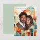 Anpassa med ditt favoritfoto. Söt, modern, geometrisk, Spara datumkortet med former i skuggor av rosa, persika, orange, grönt, teal och blått.