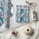Papper i ett modernt geometriskt rutnät av trianglar i havsglas färg av kerulenblått, turkos, akva, kaffebrun, beige och mjukt violett