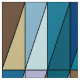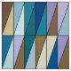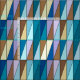 Fabric in a Mid Century Modern geometric grid of triangles in sea glass färg of cerulean blue, turquise, aqua, kaffe brun, beige och soft violet