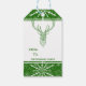 Modern geometrisk vit och grönt-julklapp-hjort presentetikett