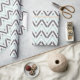 Modern inslagning papper med geometrisk mint blue, white, grått chevron mönster.
