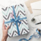 Modern Geometrius Blue Grått White Chevron Presentpapper