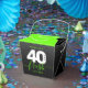 Fira de stora fyra åh med den här snyggtens moderna utformning, som har ett tydligt svart, vitt och ljust grönt och handskrivna bokstäver som sätts på en rökig grått till rikens svarta bakgrund. Omvänd visar identisk design. Design © W.H. Sim. Se mer på zazzle.com/expressionsoccasions