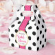 Önska dina gäster med den här moderna möhippan för giftig chic i modernt svart och vitt polka dots med fuchsiska accenter. Anpassa med brudens namn och duschdatum så är du redo. Se matchande inbjudningskort för möhippan här: