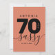Fira hennes stora sju åh med den här snyggten, moderna färgblock inbjudan, som har en träffande svart, vit och kopparblock och handskrivna bokstäver på rik-svart-till-rökig-grått- och kopparbakgrunder. Design © W.H. Sim. Se mer på zazzle.com/expressionsoccasions