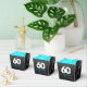 Fira de sex stora med den här snyggten moderna designen, som har ett tydligt svart, vitt och isblått block och handskrivna bokstäver som sätts på en rökig grått till rikens svarta bakgrund. Omvänd visar identisk design. Design © W.H. Sim. Se mer på zazzle.com/expressionsoccasions