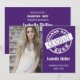 Den här moderna inbjudan till studentfest innehåller en vit cirkel som frimärke med vit typografi som visar "klass av" och studenten-året. Lila bakgrund färg och vit text. Lägg bara till fotot från student, namn och studenten. Fyll i all information om party på kortets baksida. Underbar utformning för en inbjudan till högskoleexamen eller högskoleexamen. Det finns även andra bakgrundsbilder av färg i vår butik.