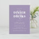 Den här moderna lilac-födelsedagsinbjudan anger tonen för en oförglömlig kväll. Fet typografi annonserar middagen och dryckerna med tillförsikt, medan den minimalistiska utformningen tillför lite elegans och kant. Perfekt till vuxnor som uppskattar stil, substans och en bra natt.