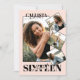 Modern Girly Rosa Black Four Photo Sweet 16 Inbjudningar