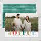 Ett modernt julfotokort med eleganta guldbokstäver som växlar med festliga ädelstensfärger .