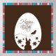 Glad påsk illustration med en enkel minsta färgad av Påskägg med silhuetter av kanin, fjäril, blommor och Påsk hälsning på en chokladbrun bakgrund med en stripe ram.