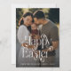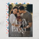 Modern, trendig-typografi-skript, Påsk-fotokort. Design med ett enda fotot och ett vitt övertäckningsskript av typografin "glad påsk". Anpassa dig ytterligare med en familj namn. Perfekt för att du önskar dina kära en Glad påsk.