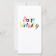 Modern, lekfull, färglös grafisk design av ett ordspråk "Grattis på födelsedagen" i rött, gult, blått och svart färg. Kreativets typografi.