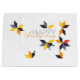Modern, lekfull, glad grafik med ett ordspråk "Happy thanksgiving" med geometriska former i höst löv-abstraktion i rött, orange och grått färg. Handskriven stadstypografi.