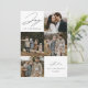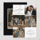 Modern julkort med frasen "Glädje för världen" i elegant svart skrivstil med vit bakgrund. Framsidan av designen visar 4 av dina favoritfamiljefoton arrangerade i en collage-liknande layout. Personifiera framsidan på det flerfotos julkortet med din familjs namn och året. Kortet vänds för att visa ett ytterligare foto.
