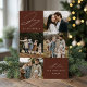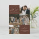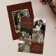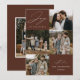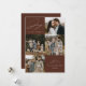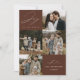 Modern julkort med frasen "Glädje till världen" i elegant vit skrivstil på brun bakgrund. Framsidan av designen visar 4 av dina favoritfamiljefoton arrangerade i en collage-liknande layout. Personifiera framsidan på det flerbilder julkortet med ditt familjenamn och året. Kortet vänds för att visa ytterligare ett foto.