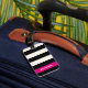 Chicens bagagemärke innehåller svart vitt och gräddat rand med färgblockets magenta rosa accent. Anpassa baksidan med ditt namn och din kontaktinformation.