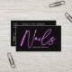 Modern glam lila neon nagel-skript, logotyp qr-kod visitkort