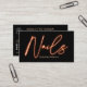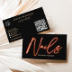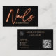 Modern glam orange neon nagel-skript, logotyp qr-k visitkort