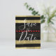 Modern Glam Svart & Guld Röda Hjärtan Spara Datum Meddelande Vykort