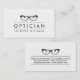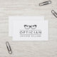 Ett modernt affärskort för optiker. Affärskortets design visar ett par glasögon med ditt företag namn mellan två linjer och ditt namn. På baksidan finns all kontaktinformation. Optiker bestämmer specifikationerna för olika ögonutrustningar, t.ex. kontaktlinser, glasögonlinser, aids med lågt seende eller ögonprotes som kommer att göra ge den nödvändiga korrigeringen för en persons syn.