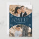 Önska nära och kära en lycklig julhelg genom att skicka dem ett helgdag-kort designat av Late Bloom Paperie! Det unika helgdag har två foton inuti ett ovalbart bålfoto ram. "Glatt" visas i vit, modern text som accentueras av handritat snöflingor. Anpassa framsidan av julfotokortet genom att lägga till ditt namn. Baksidan av multifotokortet visningar en marin snöflinga mönster.