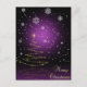 En gleamisk och snöig julillustration med ett lysande julgran och snöflingor mot lila bakgrund.