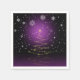 En gleamisk och snöig julillustration med ett lysande julgran och snöflingor mot lila bakgrund.
