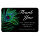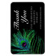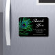 Modern Glitter Feather Bho Chic Tack Small Business Promotional Magnet har fredsfjädrar i grönt, blått och lila i svart bakgrund med texten "Tack" i elegantens moderna kalligrafvita skript. All text och färg i bakgrunden är anpassade. Anpassa genom att redigera texten i textrutan. Designad av Evco Studio https://www.zazzle.com/store/evcostudio