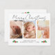 Det här vackra helgdag till julafton är perfekt för att skicka dina julhälsningar! Den moderna utformningen av eleganten har ett minimalistiskt stil och har tre lodrät-foton bredvid varandra och modern typografi (handskript och sans serif) för din information. På baksidan finns ert budskap om anpassade och vackra botaniska hollbär. Använda knappen "Anpassa" om du vill ersätta foton och redigera text.