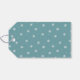 Enkla och moderna märkre för presenter i helgdag som innehåller "God jul" och som visas i frostigt blått, modernt bokstäver. Anpassa märkrn till julklapp genom att lägga till ditt namn. Märkrns baksida har en frostblå och vit snöflingdesign.