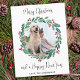 Skicka julhälsningar den här julhelgen med anpassningsbarna God jul i elegant i ett utandningskort och matchande dekoder. Det här fotokortet har en vattenfärgsfärgad grönt och en röd andedräkt med helgdag och bär. Anpassa med meddelande och familj namn. Det här gigantiska fotopallkortet är perfekt för familjefoto, husfotojulkort. Besök vår samling för matchande julklappar, hemdekanter och gåvor. COPYRIGHT © 2020 Judy Burrows, Black Hund Art - Med alla Höger reserverade. Modern God jul Greenery Wandey Photo Helgdag Postcard