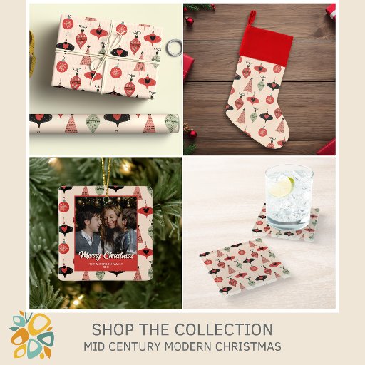 Skicka hjärtliga semesterhälsningar med vårt moderna julkort i mitten av århundradet. Det här kortet har fjällande design i rött, rosa, grönt och svart, och fångar charmen med atomtidsmotorer. Innehåller ett redigerbart varmt budskap som önskar glädje, kärlek, och skratt för julhelgen. Perfekt för att dela festlig glädje med nära och kära.
