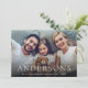 Modern minimalistisk god jul-kortdesign har namn i elegantens trendig-skript och typografi, med personligens familjefoto, enkla och unika hälsningskort.