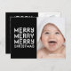 MODERN GOD JUL JULHÄLSNINGAR FOTOKORT I BLACK. Skicka din Baby Första julen Hälsning till familj och vänner med den här contemporaryn Julhälsningar vykort med ditt foto och ett vintage-menyfliksteckensnitt. En enkel mångsidig design av Elke Clarke© för Monogram Gallery. Kontakta butiksägaren eller luxuryweddinginvitations@gmail.com om du vill ha mer färg