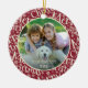 Skapa en keepsaké eller presentdekoration med ord GOD JUL i en dekorerad kranbärsröd och benvit, handtryckt helgdag, mönster, din foto- och anpassningsbar. ASSISTANS: Om du vill ha hjälp med designändringar eller anpassning, ändrar färg, ändrar storlek, överför designen till en annan produkt eller om du vill samordna produkter kontaktar du designern innan du beställer den via Zazzle-Chatta eller e-post makeitaboutyoustore@gmail.com.