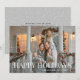 Detta eleganta julkort har vit skrift God Jul, ditt favoritfoto och är personligt med ditt namn. Baksidan av kortet har ditt personliga julmeddelande.