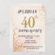 Modern Gold Glitter 40th Birthday Inbjudningar