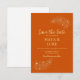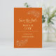 A charming save-the-date invitation features a Burnt Orange background framed by delicate leafy details for a soft, elegant touch. Stylish, refined text highlights the occasion, with customizable spaces for names, date, and address. Combining classic design with modern convenience.