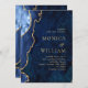 Modern Golden Navy Blue Marble Agate Bröllop Inbjudningar