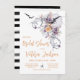 Watercolor Halloween inbjudningskort för möhippa med lila och orange blommigt inslag, fladdermöss, spindelnät och elegant skelett händer. Perfekt för en möhippa, förlovningsfest, bachelorette-fest nära Halloween-tiden! Om du vill göra fler ändringar går du till Anpassa den här mallen. På grund kan du se "Vill du anpassa designen ännu mer? Klicka på EDIT med Design verktyg. Därifrån kan du ändra en del av typsnitt och en del färg, flytta sak runt eller ta bort det du behöver.