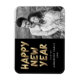Fira det nya året genom att skicka våra kära till vår moderna fotomagnet i Gott nytt år. Trendigets nya årsmagnet har "Gott nytt år" i ett flytande guld typografiskt stil med en svart bakgrund eller färg efter eget val. Anpassa magneten chic gott nytt år genom att lägga till ditt namn, året och ett foto.