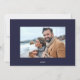 Det här är en elegant och ett enkelt nytt årskort med ett minimalistiskt foto kombinerat med "Gott nytt år" i ett vackert handskrivet skript. Kortets baksida användor en elegant och färsk vit och marin blå rand. Ändra enkelt fotot och växla ut familjen namn för att anpassa kortet. Kontakta designern om du vill ha frågor eller problem med den här designen eller om du vill ha matchande produkter.