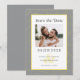 Lägg till ditt eget foto på vårt trendiga "save the date"-fotobrylluppskort med ett modernt abstrakt bladsmönster i lysande gult på en ultragul bakgrund. Kraftfullt tryck och skrivstil är i grått och gult på vit bakgrund. En trendig mall kompletterar den unika skrivstilen. Stilfull skrivstil i ultragult är arrangerad i en koordinerad gul ram på vit bakgrund. En modern mall för datum och år kompletterar den unika skrivstilen och parets förnamn. [OBS: Datumdisplayen för bröllopet som visas använder det vertikala strecket eller linjen som kan hittas ovanför \ på ett tangentbord eller på din smarta enhet med specialtecken. Du kan också anpassa med valfritt annat tecken.] Baksidan av kortet är enfärgat grått. Anpassa med ditt favoritförlovningsfoto för att tillkännage din stora dag! Andra mönster finns tillgängliga i denna svit. (För bästa placering av din bild, använd ett fotoredigeringsverktyg för att centrera och beskära INNAN du laddar upp till Zazzle-webbplatsen.) Se till att se länken till samlingen på denna sida för att se alla matchande