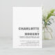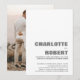 Bjud in dina vänner och nära och kära med denna stilrena minimalistiska vita med grå text bröllopsinbjudan med ett foto av det nygifta paret på baksidan för att dela din glädje över ditt senaste äktenskap. För bästa resultat anpassa din valda bild för baksidan av inbjudan till en 5 x 7 proportionell beskärning.