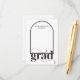 Gratulera till din stora prestation med vårt moderna GRAD Black Arch Student-höljeskort! Det här minimikortet har en contemporary och en fetstilt GRAD. Anpassa den och lägg den på med din studentfest inbjudan eller ditt meddelande till vänner och familj att fylla i.