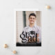 Modern GRAD Cap Typography 2 Photos Black Notice. Meddela din student med detta fotomeddelande med 2 bilder (en på vardera sidan) och en modern typografisk design för titeln GRAD accentuerad med en studentmössa och ett klassår på framsidan i ditt val av text och grafik färg (show in black) och ett svart ombre-fotoöverlägg på framsidan. På baksidan finns ett ställe som kan innehålla ytterligare information om student eller ta bort exempeltexten om du vill lämna tom. ASSISTANS: Om du vill ha hjälp med designändringar eller anpassning, ändra storlek på färg, flytta designen till en annan produkt eller om du vill samordna objekt kontaktar du designern INNAN ORDERING via Chattan Zazzle MESSAGE eller e-post makeitaboutyoustore@gmail.com.