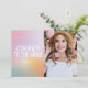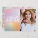 Modern contemporary-grungy-fotomeddelande från studenten. Med plats för foto och information på baksidan av kortet. Modern gigantisk rosa-pastellregnbåge och vit färg kan anpassas till kostym i stil.