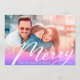 Modern Gradient White Merry Lettering Photo Helgdag Card